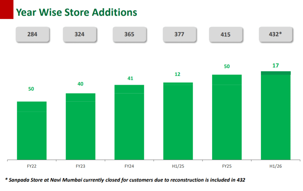 The operating profit (EBITDA) has also increased — now standing around ₹1,300 crore per quarter, with healthy margins of 7–8%. These are strong numbers for a retail business that works on thin margins.